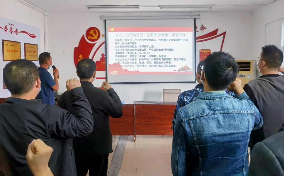 為進(jìn)一步強(qiáng)化公交駕駛員“迎國慶、防風(fēng)險(xiǎn)、遏事故、保安全”及優(yōu)質(zhì)服務(wù)的意識(shí),9月25日上午,以節(jié)前駕駛員安全服務(wù)培訓(xùn)活動(dòng)為契機(jī),市公交集團(tuán)組織百余名駕駛員代表,在公汽二公司會(huì)議室開展“安全行車、文明服務(wù)、迎接國慶”宣誓活動(dòng)。