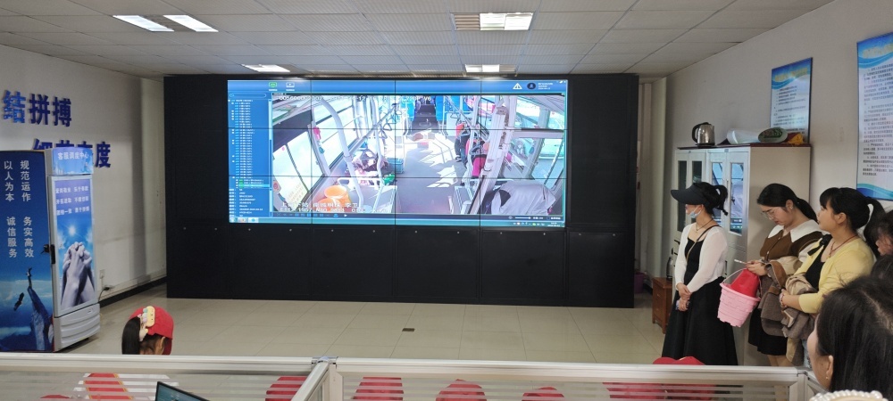 圖/在客服調度中心,整墻的大屏幕,變動的車輛信息和實時車載畫面,深深吸引了同學們的目光。