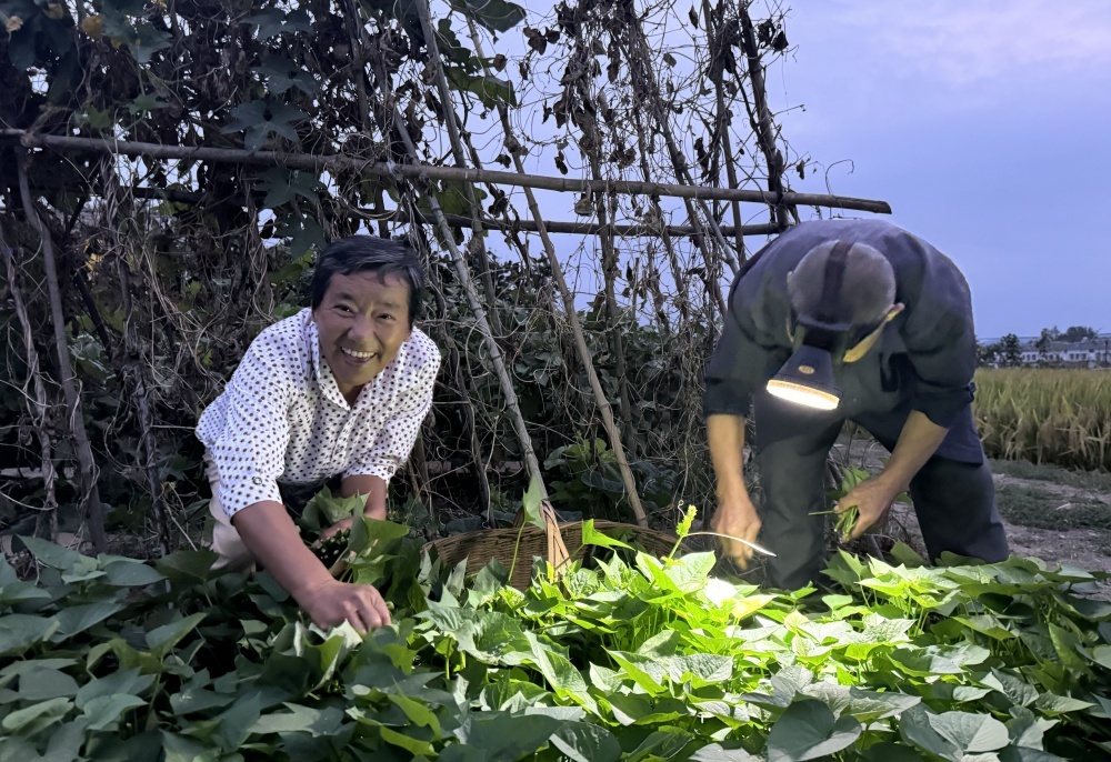 清晨4:30,當(dāng)大多數(shù)人還沉浸在夢(mèng)鄉(xiāng)之時(shí),家住八角村的石大娘與老伴已經(jīng)踏著露珠,開(kāi)始了勞作——采摘最新鮮的蔬菜到市場(chǎng)去販賣。