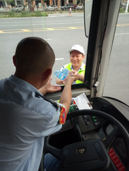 “目前還有小部分線路的公交車是沒有空調(diào)的,就算夏天再熱也得堅(jiān)持,現(xiàn)在天這么熱,一天下來(lái)衣服都不知道要濕多少次。今天有他們給我們送來(lái)的礦泉水,讓我們司機(jī)在這夏日里體會(huì)到了一絲清涼,真的很感謝他們。有了他們的支持和理解,我們更要做好本職工作?!惫患瘓F(tuán)工作人員說(shuō)。