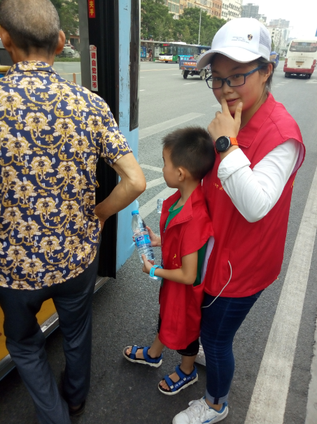 15時(shí)許,志愿者們已經(jīng)布置好了送水點(diǎn),將箱礦泉水?dāng)[在了站臺(tái)旁邊。每有一輛公交車進(jìn)站停靠,志愿者們都會(huì)給駕駛員們遞上兩瓶礦泉水,還有一些放暑假的小朋友們,也熱情的加入到此次活動(dòng),充當(dāng)著志愿主力軍,用他們的行動(dòng)清涼了公交駕駛員的心,傳播著社會(huì)正能量。